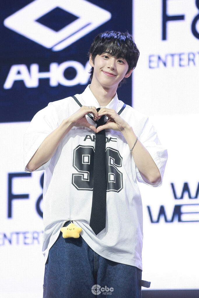 On July 1, Seo Jungwoo, a member of rookie K-pop group AHOF, made a striking appearance at a media showcase for their debut mini album ‘WHO WE ARE’. The event took place at the YES24 Live Hall in the Gwangjin District of Seoul, drawing attention from local media and K-pop fans alike.