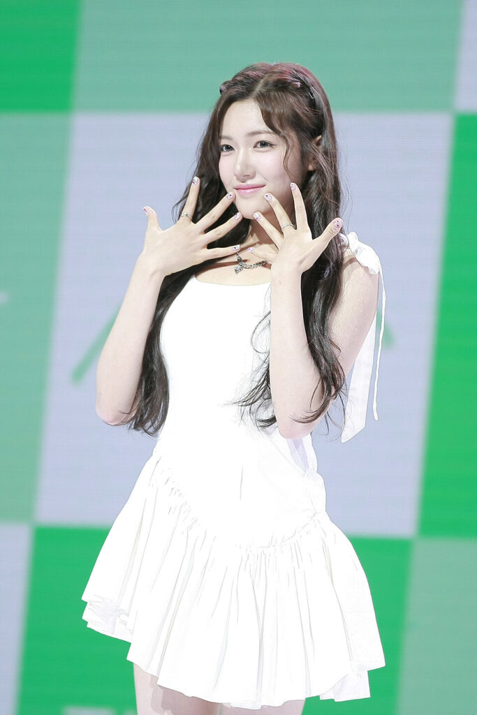 During the group’s first-ever press event, member Seohyun took center stage during a photo time segment, captivating both cameras and hearts. Dressed in a trendy performance outfit that perfectly blended chic and fierce idol vibes, Seohyun struck poses that screamed future fashion icon.