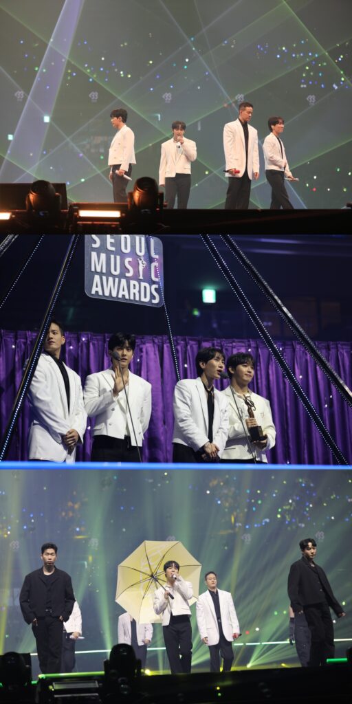 Leader Seo Eunkwang also delivered a surprise solo performance exclusively for the Seoul Music Awards. He impressed with his cover of Shin Seung-hun’s “You Reflected in My Smile,” charming the audience with both his mellow tone and power vocals.