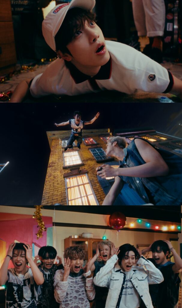 The teaser opens with member Song Seungho walking into a festive Christmas party carrying a pizza box — but things take a sudden twist. A series of bizarre mishaps ensue, starting with pizza accidentally splattering across Seo Kyungbae’s face. Other members face equally odd and unfortunate fates, all leading to a surreal revelation: they’ve become ghosts observing their own downed bodies.