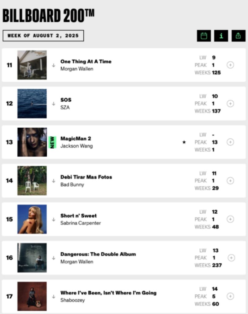 According to Billboard’s August 2 chart, MAGIC MAN 2 sold over 32,000 copies in its first week. It also hit: