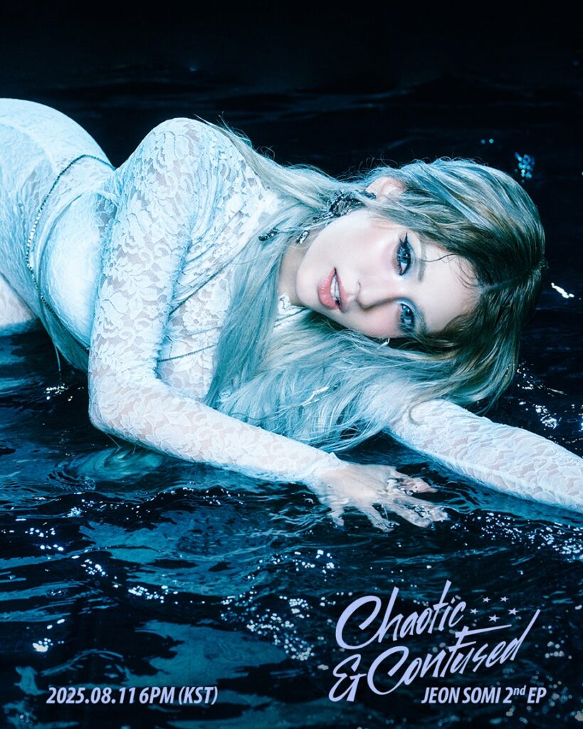 Always one to keep fans guessing, Jeon Somi is turning heads once again with her bold concept teaser for her upcoming EP Chaotic & Confused, out on August 11 at 6 p.m. KST.