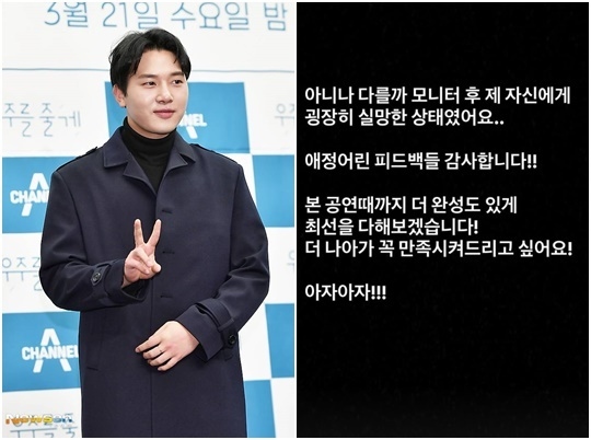 Posting to his Instagram on the 22nd, Kim admitted, “As expected, I was really disappointed in myself after monitoring my performance.” Some early buzz around his singing on a recent appearance on KBS2TV’s THE SEASONS – 10CM’s Hug Me was less than glowing, especially for the musical numbers. But instead of sulking, he took it as fuel. “I’m grateful for the feedback offered with love,” he wrote, promising to improve: “I’ll do my best to raise the performance level by the opening night.”