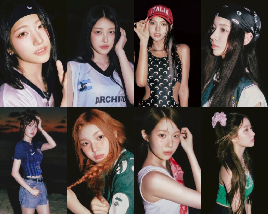 Previously, the group exuded breezy charm in their unit teasers. But the newly released solo concept photos show a moodier, nighttime aesthetic—think twinkling twilight layered over neon-lit backdrops. Each member poses with piercing gazes and glowing visuals, making it hard to scroll past without pausing for a second (or ten).
