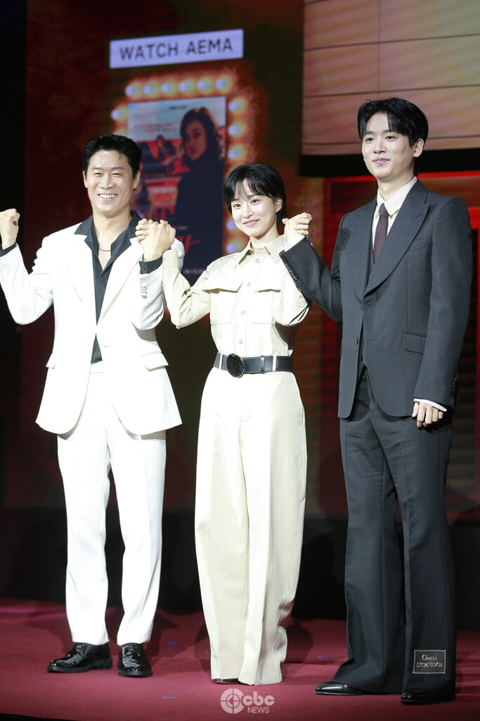 The cast of Netflix’s upcoming K-drama ‘Aema’ gathered in Seoul on July 18 to spill the tea on one of Korea’s most provocative new releases. Held at Hotel Naru in Mapo-gu, the press event featured director Lee Haeyoung and actors Jin Seonkyu, Bang Hyorin, and Cho Hyunchul. Mom-to-be Lee Honey (a.k.a. Lee Hanee) was notably absent from the photo wall due to her late-term pregnancy.