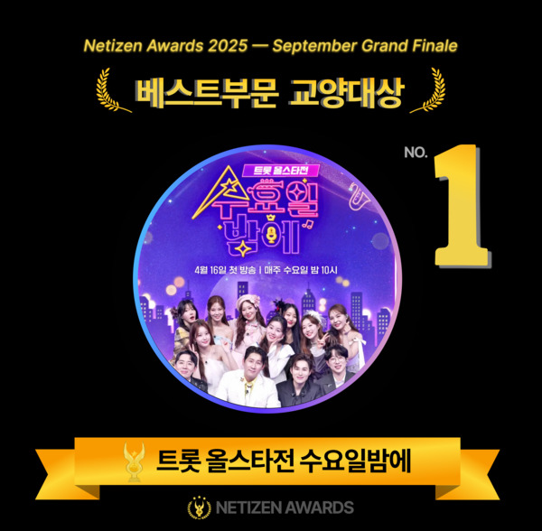 Trot dominates again! 'Trot All-Star Wednesday Night' takes home the top spot in September’s Netizen Awards for cultural variety, showcasing the genre’s unshakable popularity.